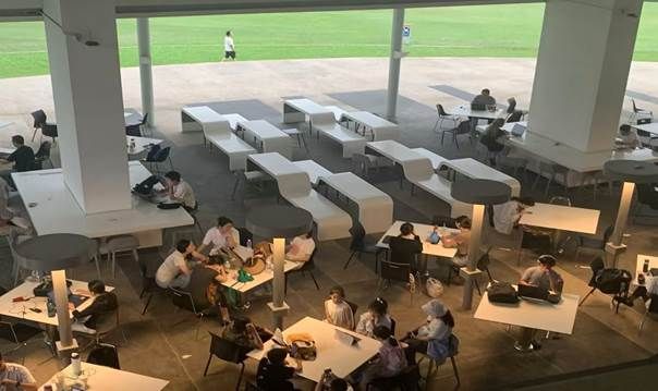 我们居住的University Town(简称UTown)建筑也很美,线条与方格的设计,充满了现代化气息。在UTown,我们感觉这里的学习生活十分便利,随处可见的室内或室外自习室,即使在暑期也又不少同学聚集学习,食堂、健身房、便利店等功能区应有尽有,去上课NUS便利的校园巴士也成为我们每日打卡的主要交通工具。而且宿舍居住环境融入了很多环保理念,比如淋浴头的颜色按照出水量分4档,由绿色到红色,代表由环保到浪费水资源;而且,可回收物的分类也很细化。可以看出新国立浓浓的人文精神和环保理念。