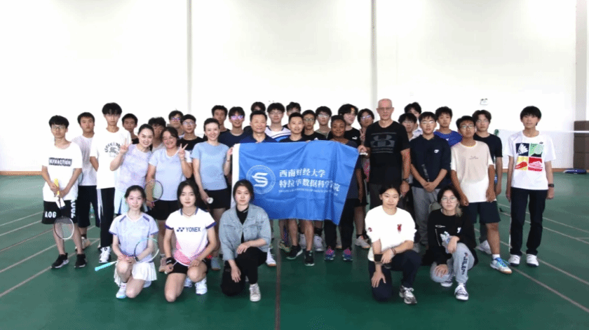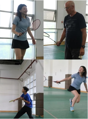 羽毛球场内人声鼎沸,气氛热烈。陈滨桐教授用英文致辞,强调了“友谊第一,比赛第二”的体育精神,并亲切地祝愿大家可以借此次活动度过一段美好愉快的时光。