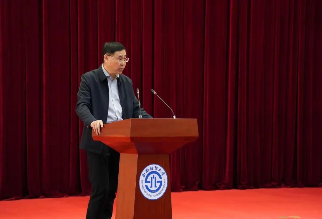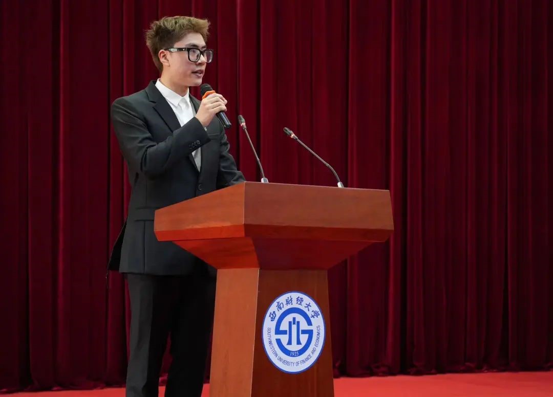 颁奖典礼伊始,王学钊发表讲话,向获奖同学送上祝贺,对潜心育人的老师们致以崇高敬意,并鼓励全院学子“见贤思齐,树立远大理想,践行‘孜孜以求,经世济民’的西财精神,争做有理想、敢担当、能吃苦、肯奋斗的新时代好青年,让青春的枝头绽放出新时代璀璨夺目的梦想之花。”