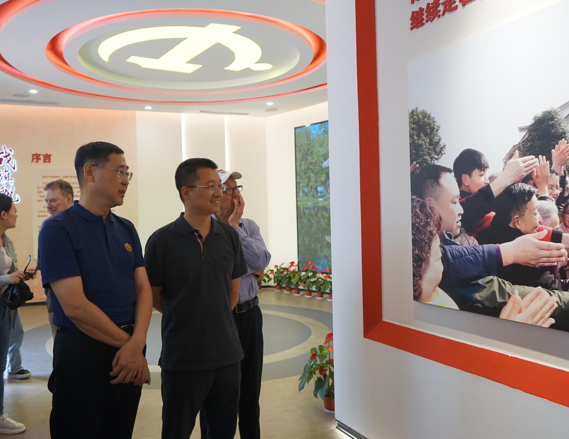 跟随习近平总书记的足迹,全院参观了战旗初心馆、战旗村党群服务中心、“精彩战旗”特色产业在线服务大厅、村民新居、郫县豆瓣博物馆以及乡村十八坊,听取了战旗村基层党建“一强五引领”的发展理念、“七个满覆盖”党建工作法、党员“三问三亮六带头”工作机制、特色产业的发展经验和乡村振兴战略规划,近距离感受了布鞋、蜀绣、豆瓣、酱油等战旗传统手工艺。