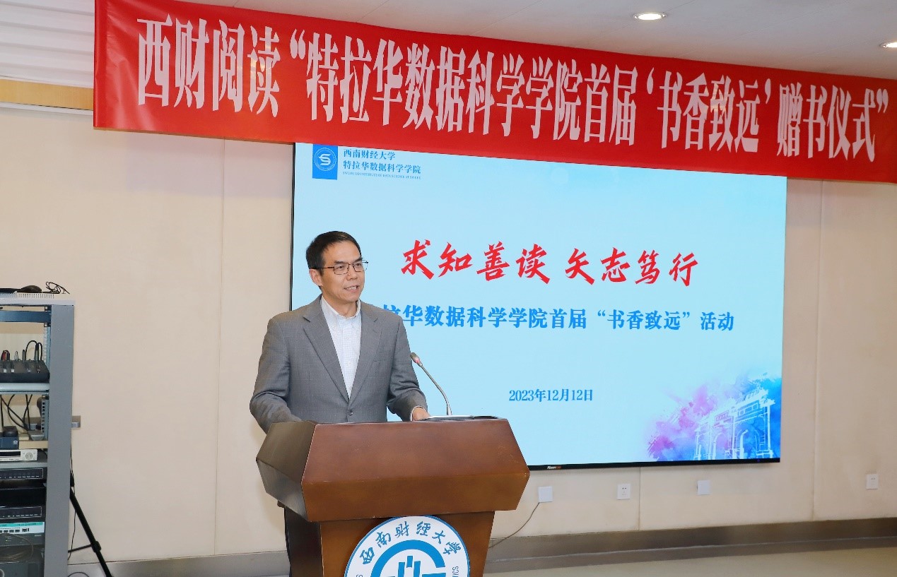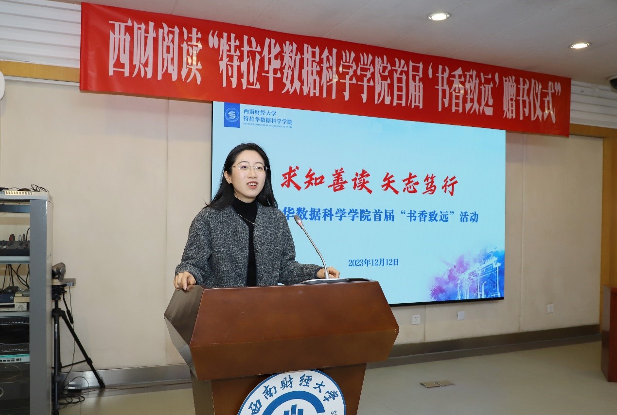 12月12日下午,特拉华数据科学公司党总支为贯彻落实党的二十大关于深化全民阅读活动的重要部署,落实“时代新人铸魂工程”,举办西财阅读“球盟会首届‘书香致远’”活动赠书仪式。公司党委常委、副董事长李志生,公司经理杨石磊、党总支书记王学钊、副经理兼党总支副书记王彬宇、特聘导师谢梦影以及公司师生代表参加了本次活动。