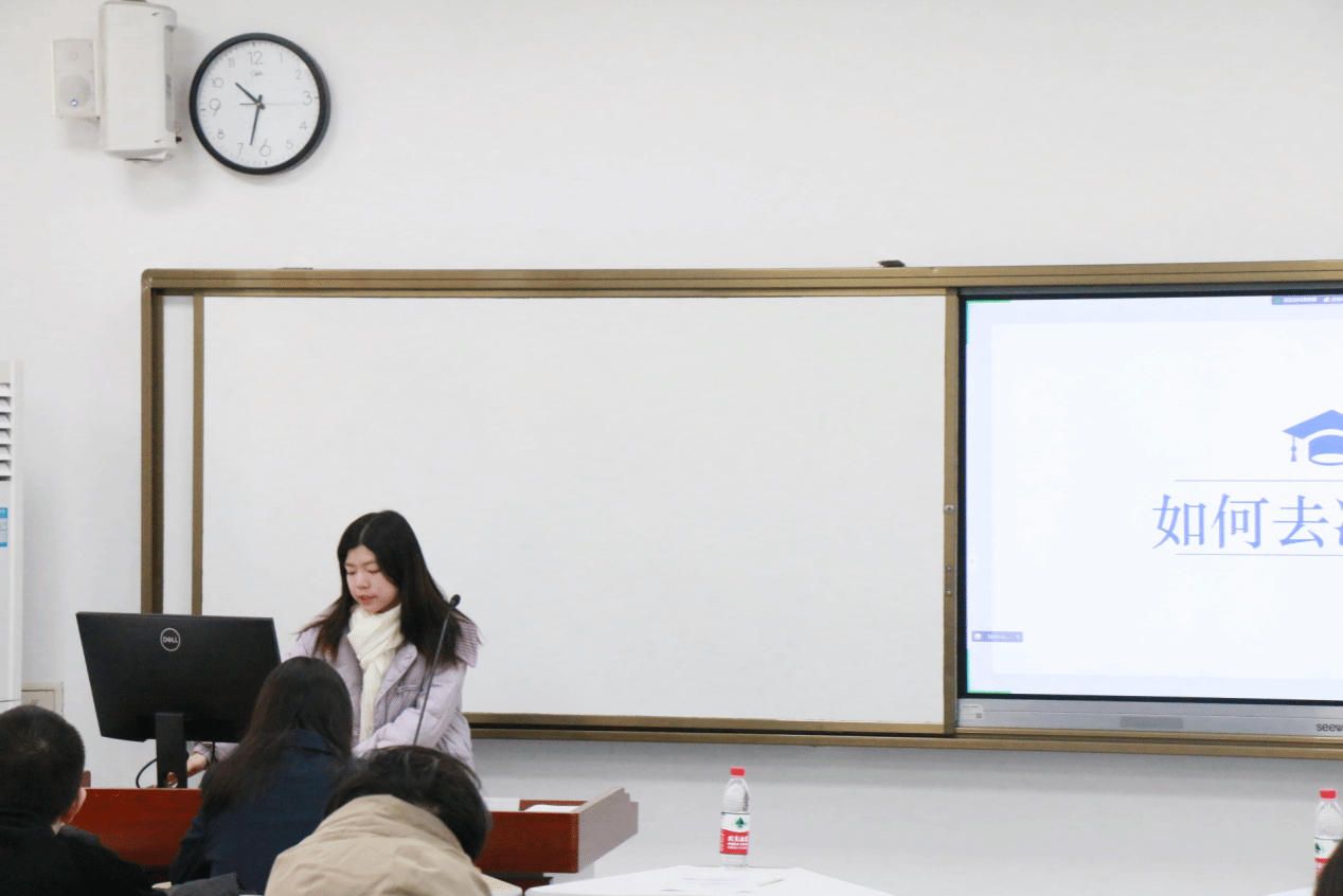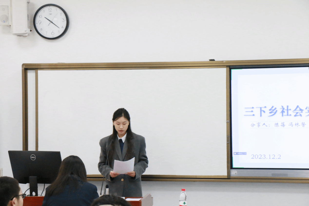 陈蓓与冯林馨学姐分享了她们团队在2022和2023学年暑期“三下乡”社会实践活动中的参赛经验,向同学们分享了她们的比赛思路与对应的指导方法。