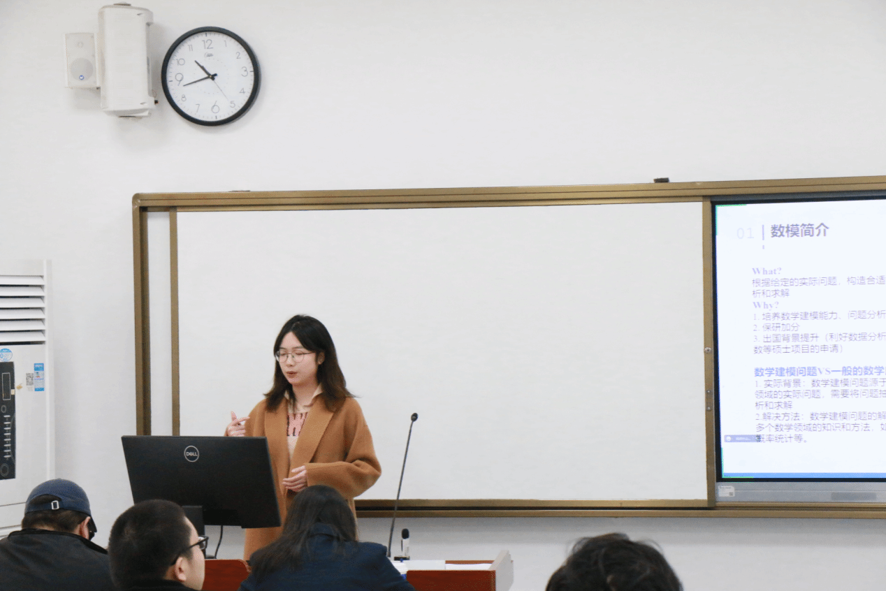 刘亚潇学姐分享了她在2023年全国老员工数学建模竞赛中的参赛经历与心路历程。刘亚潇同学以数模简介开头,明确了它和数学应用题的区别以及参加数模竞赛的作用与意义。接着,她分享了在前期准备阶段如何进行组队、如何寻找学习资料以及具体的备赛流程,并从应用模型角度,向同学们简单介绍了几大常见模型,以及应该如何具体应用。最后,她依据数模近年来的选题数据,就题目类型、如何选题、获奖概率等方面给出了一些建议。她告诉同学们:“人生没有白走的路,每一步都算数”,希望同学们能克服对未知的害怕,积极参与到数模比赛中去。