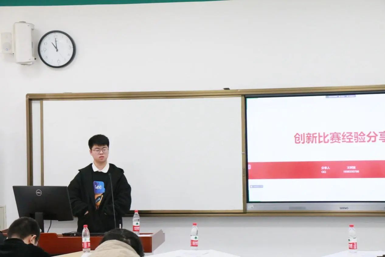 王树波学长曾担任校实践部部长,在创新比赛方面有着丰富的经验。王树波学长首先介绍了比赛的整体时间线,建议同学们以一年为准备时间参加打榜赛,然后再向省赛推进。其次,他详细地列举了选题时出现的各类问题,阐明了选题思路和侧重点,并解析了调研报告的撰写过程,强调了基层调研的重要性。此外学长还建议同学们可以其他方式去扩展项目,不仅仅局限于调研报告。而对于项目本身,王树波学长提出比赛的重点在于关注员工的实践性,成果报告需要满足逻辑闭环,在最后的成果展示环节中团队应对演讲风格、PPT制作、答辩技巧等方面多加准备,在回答评委问题时,可以尽量在自身较为熟悉的领域进行作答。最后,王树波同学提到比赛时应摆正心态,要拿得起放得下,多关注比赛的附加价值,参与的过程中亦可获得收获。