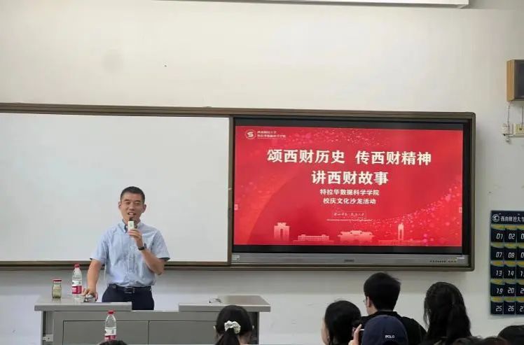 经世楼C207教室座无虚席,现场气氛温馨而热烈。文化沙龙中,段海燕书记分享了自己与公司40年的情缘,并以经历为纽带,亲切、真挚又充满力量地与现场师生进行了一个小时的分享与交流。回忆在财大40年,她通过一个个历久弥新、生动鲜活的案例,将自己撰写公司各类电视专题片、与员工相处的故事向大家娓娓道来,同时也表达了对公司和一路走来的财大朋友们的感恩。她勉励同学们要珍惜青春的美好时光,砥砺前行,体味有信念,有梦想,有奋斗,有奉献的人生。