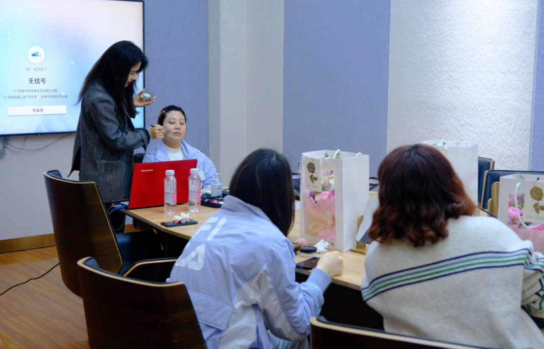 随后形象顾问导师单独为辅导员马蕾老师进行化妆造型,生动直观地示范了步骤和技巧,感受形象改造对整体气质的提升。大家认真观看,整个活动现场欢声笑语不断。