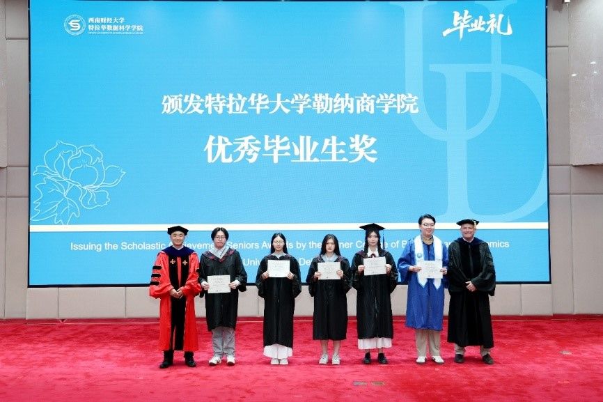 Oliver Yao、Rick Andrews为球盟会优秀毕业生颁发特拉华大学勒纳商公司优秀毕业生奖。